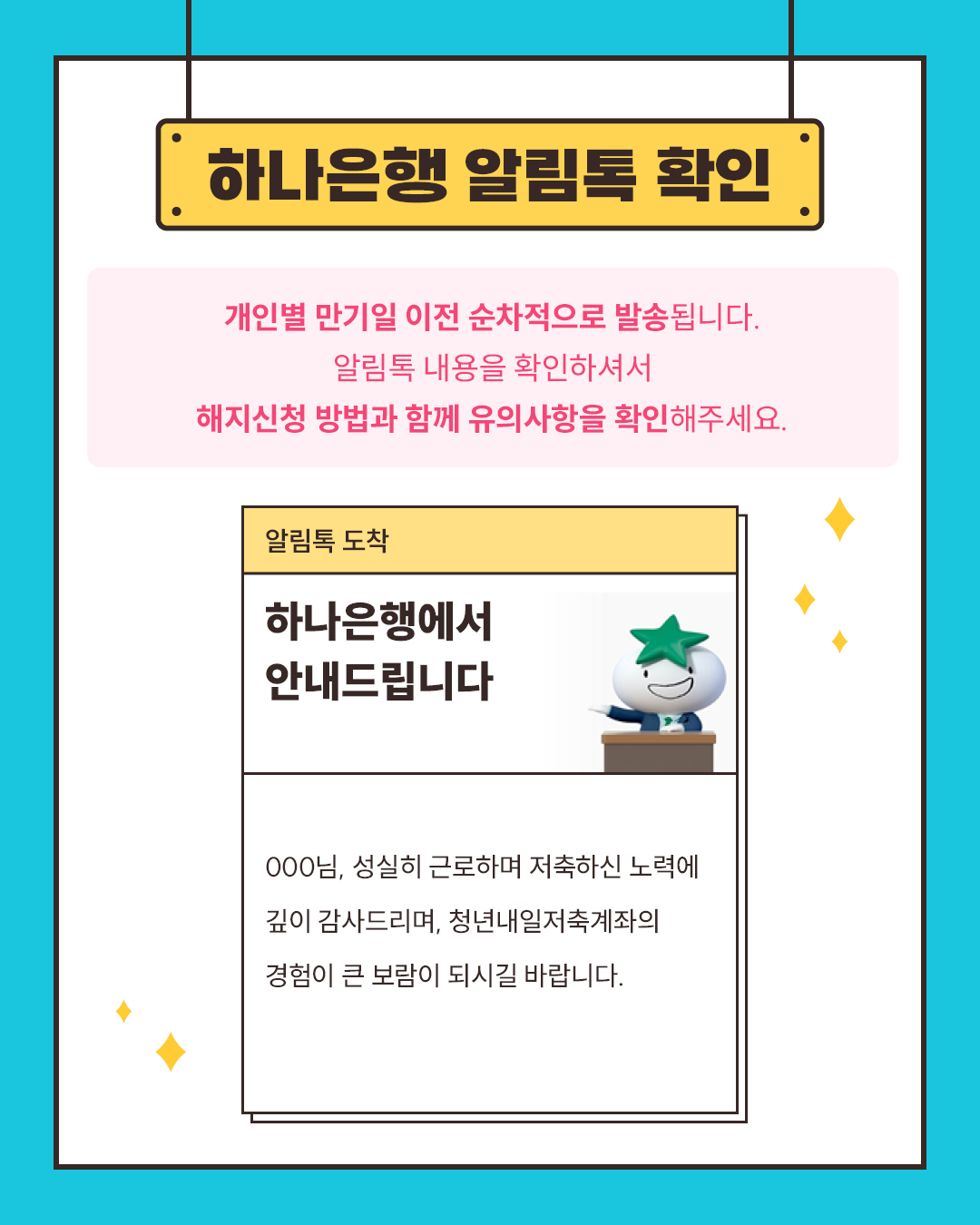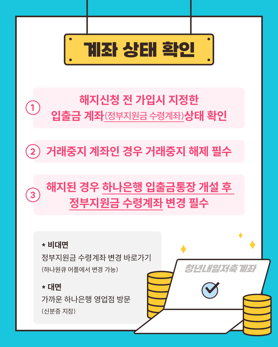 청년내일저축계좌 만기해지 양식 및 작성법(첨부참조)과 신청방법을 아래와 같이