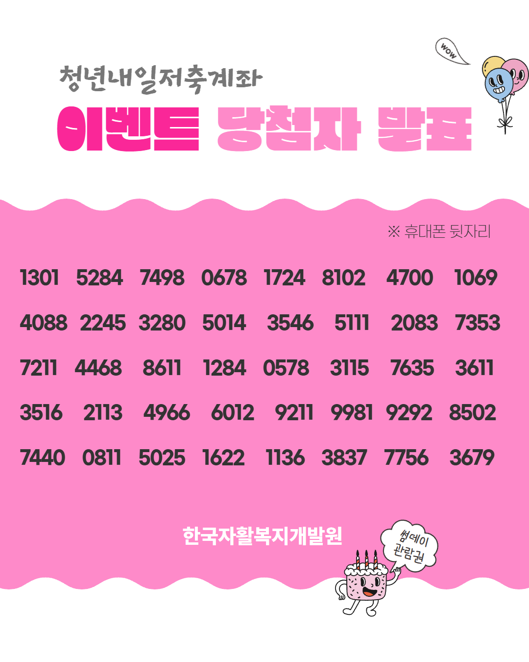 당첨되신 분들께는 개별 문자메시지를 송부 예정이오니, 참고 부탁드립니다.